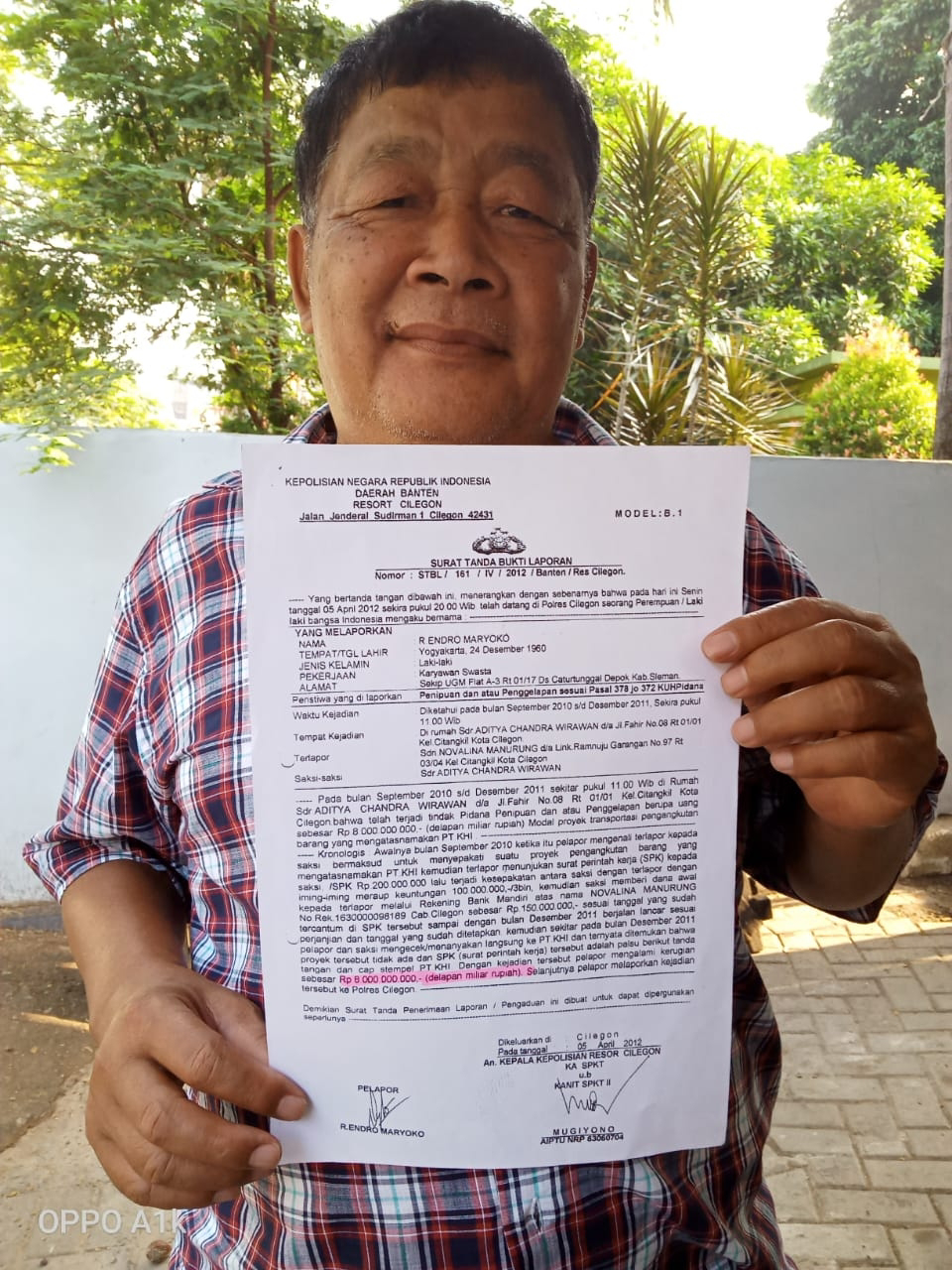 Endro mengatakan, kasus yang dilaporkannya seperti jalan di tempat. Padahal laporan tersebut sudah dibuat pada 5 April 2012 dengan nomor STBL/161/IV/2012/Banten/Res Cilegon, selain itu pula terdapat kabar bahwa AKP M. Manurung pada saat itu pernah menjabat Pulo disalah satu kesatuan dikepolisian wilayah Merak.