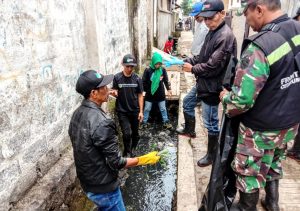 KBB-GMN,-   Seluruh Satgas Sektor 9 sub 3 bersama ratusan warga dan penggiat lingkungan serta para mahasiswa melakukan karbak di beberapa lokasi yang dilewati oleh anak sungai, pada Ahad (02/02/2020).
