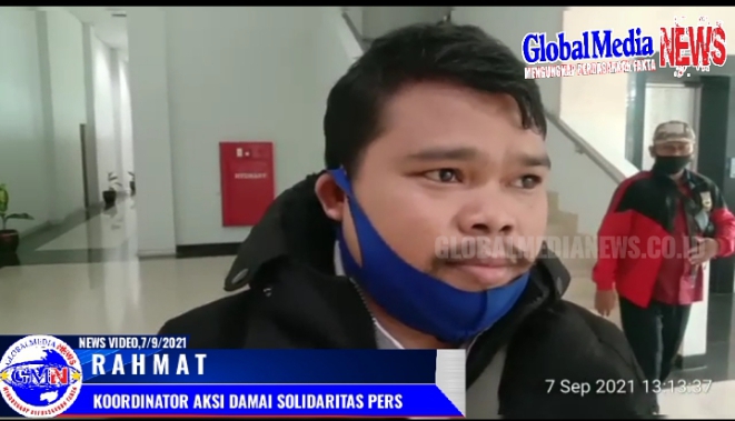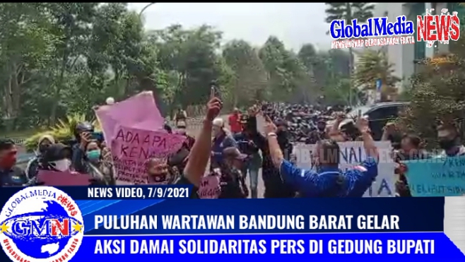 BANDUNG BARAT-GMN,- Puluhan Wartawan yang bertugas di Bandung Barat menggelar aksi Solidaritas dan berorasi di depan gedung Bupati Kabupaten Bandung Barat, Selasa (7/9/2021).