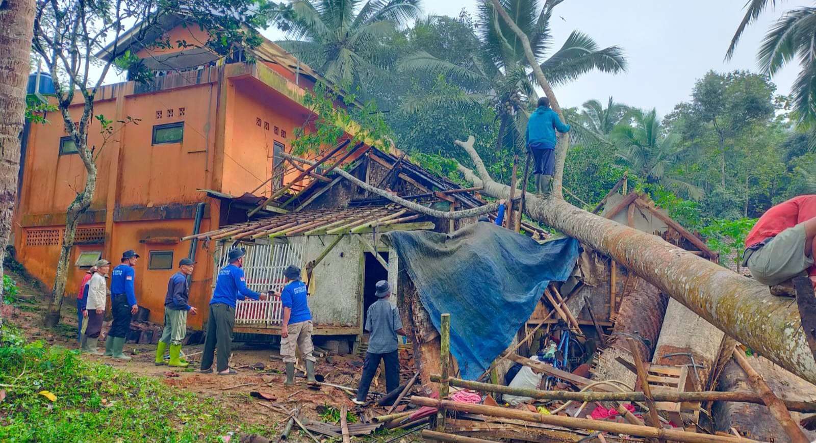 TASIKMALAYA, GMN,- Bencana pohon tumbang terjadi di Kampung Jaksi RT 05 RW 05, Desa Mandalawangi, Kecamatan Salopa, Kabupaten Tasikmalaya, Kamis, (31/7/2025). Bencana ini dipicu hujan, dan angin kencang yang melanda wilayah tersebut.