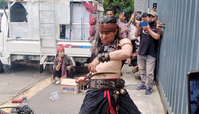 Selain spanduk, para pendemo juga membawa puluhan poster kritik dan menampilkan teatrikal debus Sunda sebagai simbol sindiran terhadap “kebalnya” para pejabat KBB yang dilaporkan ke Kejati, KPK, dan Kejagung.