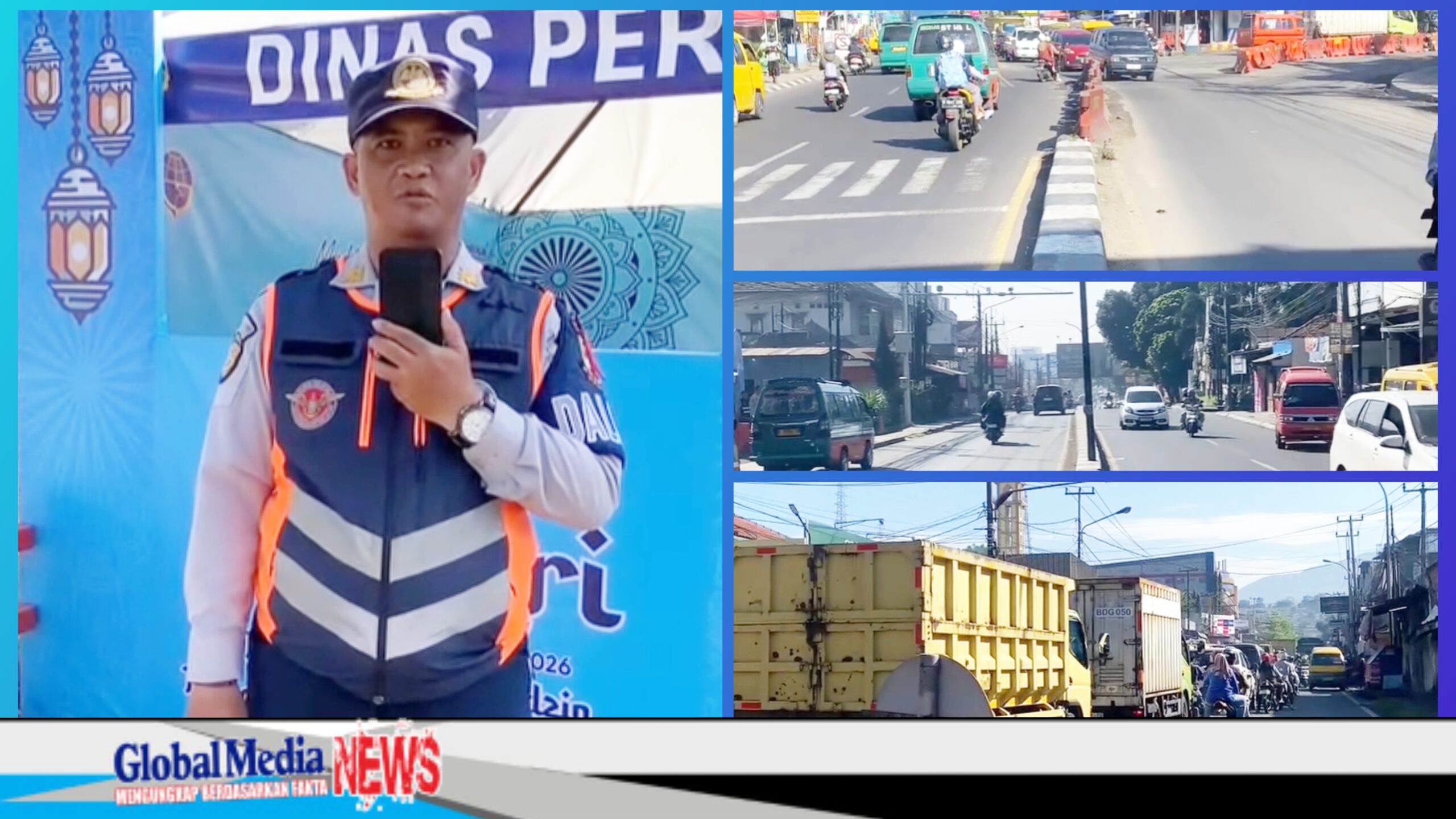 “Saya Bambang Wiguna dari Dishub KBB melaporkan kondisi arus lalu lintas di depan Poskotis Padalarang, pertigaan Tagog,” ujarnya dalam video live report.